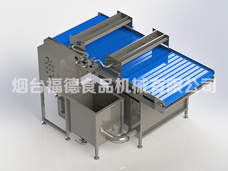 1)水帘包冰衣机主要使用于冻结后的水产品,根据需要在冻结后的水产品表面镀一层冰衣,以保持水产品表面光亮且容易保持水产品内的水分不易流失;